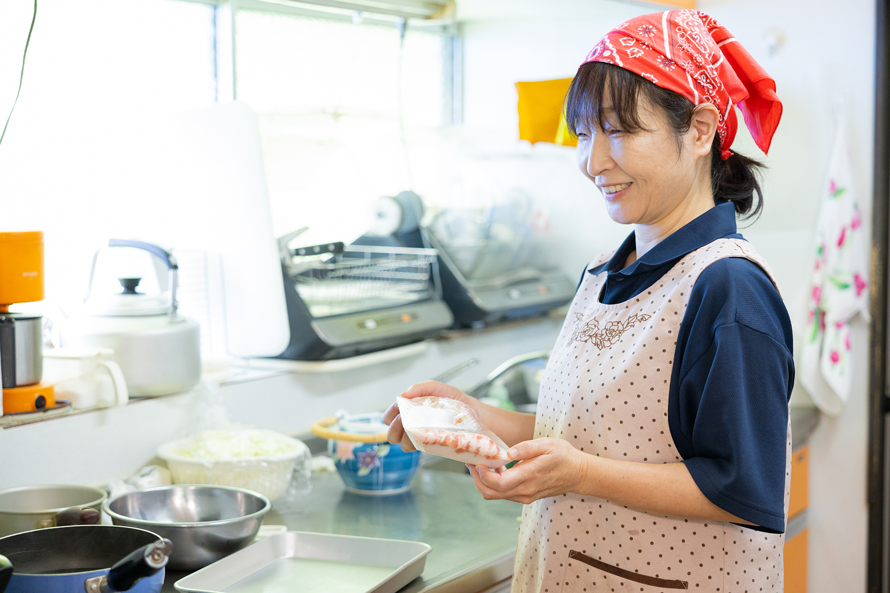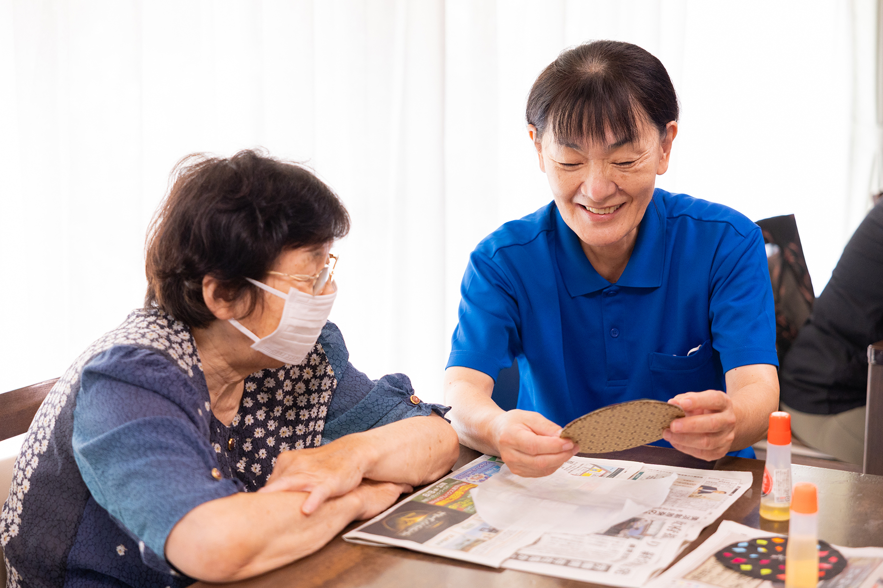 お茶を一服。熱や脈拍、血圧を測定して、健康状態を観察します。手芸や工作をします。