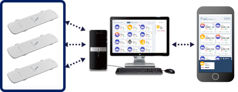 入眠状態、呼吸、心拍数、在離床などセンサーで得られたご利用者様の状態を、スタッフがパソコンや携帯端末でリアルタイムに確認できます。